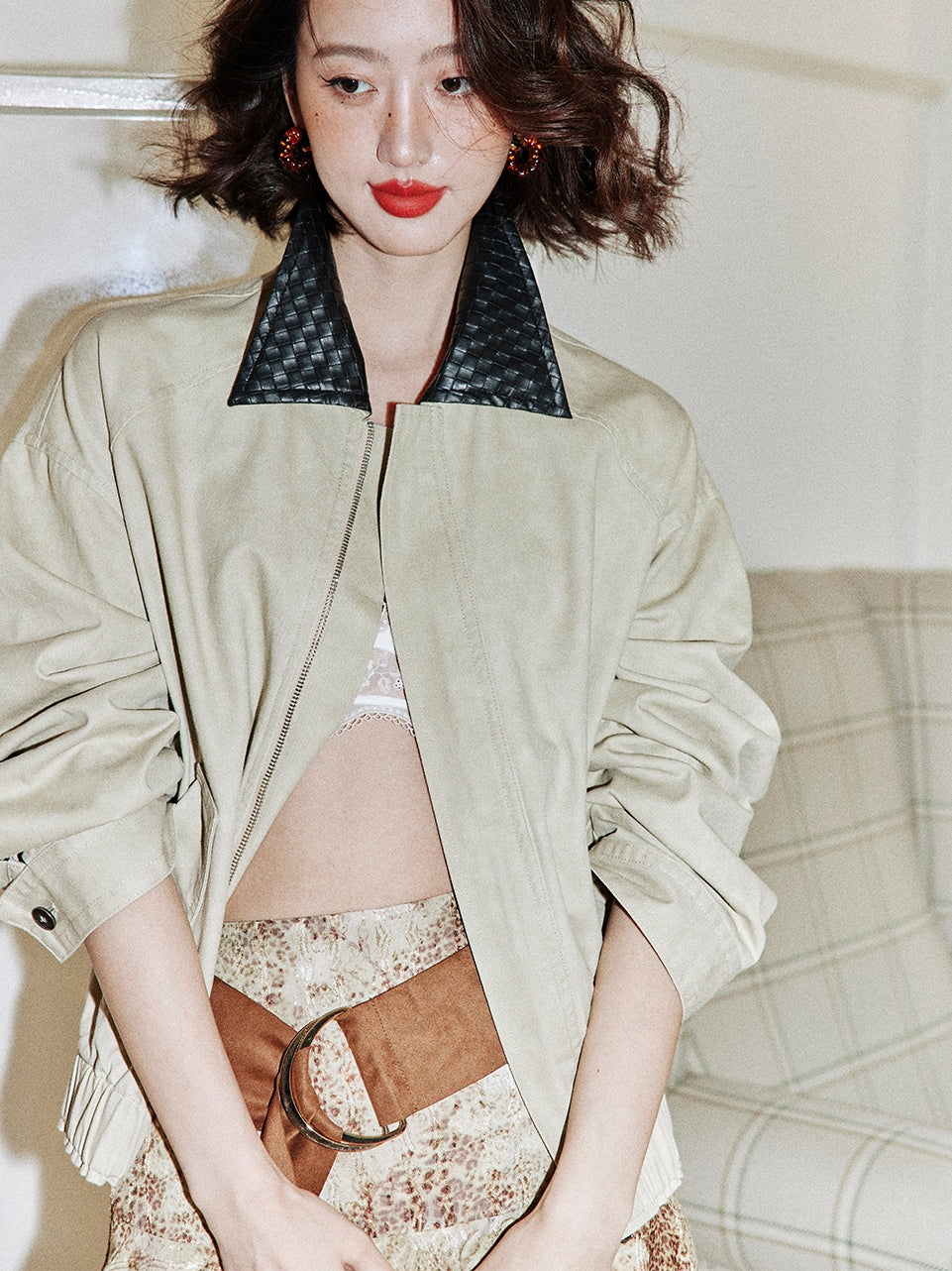 Woven Leather Collar Jacket_BDHL7758 Woven Leather Collar Jacket_BDHL7758