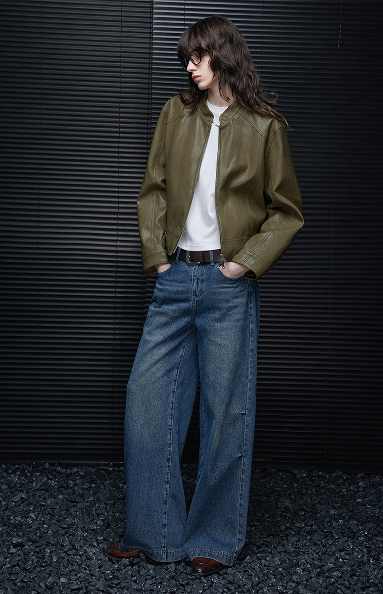 Green Short Leather Jacket_BDHL7798 Green Short Leather Jacket_BDHL7798