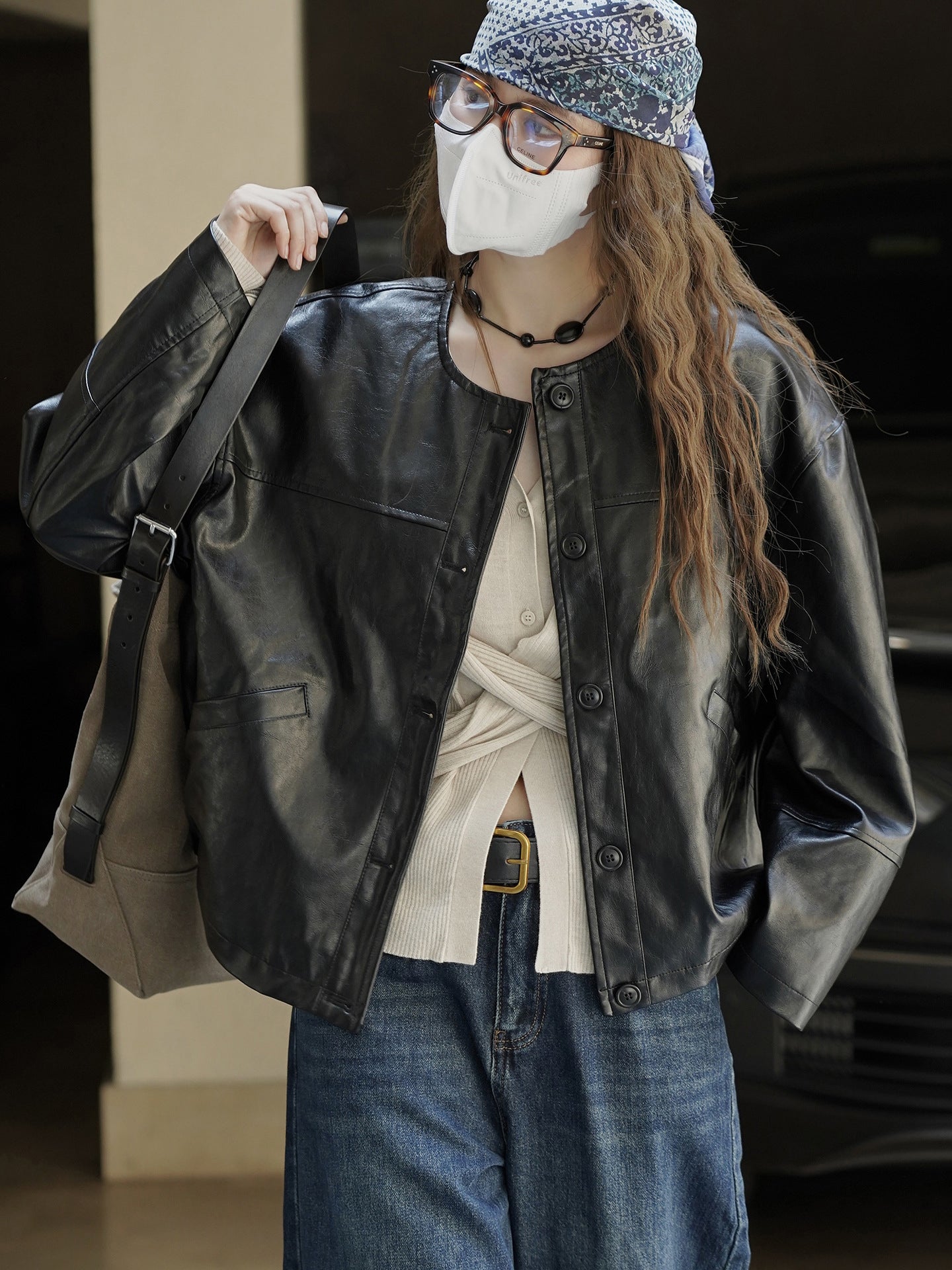 Collarless Leather Jacket_BDHL7771 Collarless Leather Jacket_BDHL7771