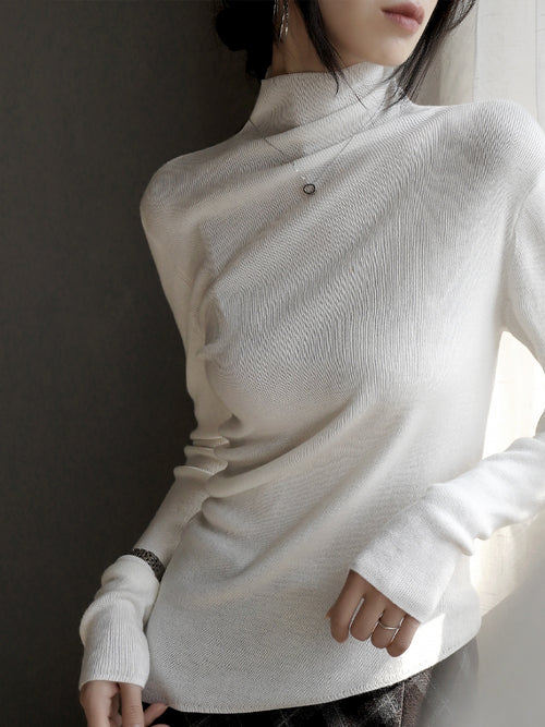 Diagonal Shoulder Knit Tops_BDHL7264 -