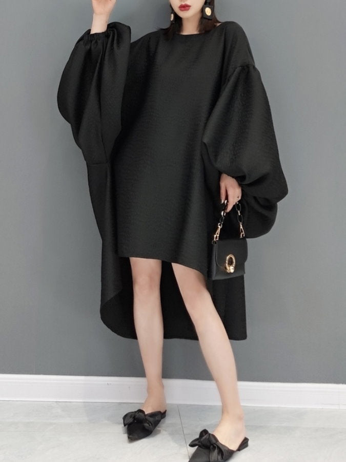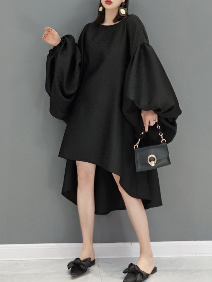 A fishtail dress with eye-catching voluminous lantern sleeves. Different hem lengths on the front and back look great from any angle. It is a perfect item for a gorgeous party scene.