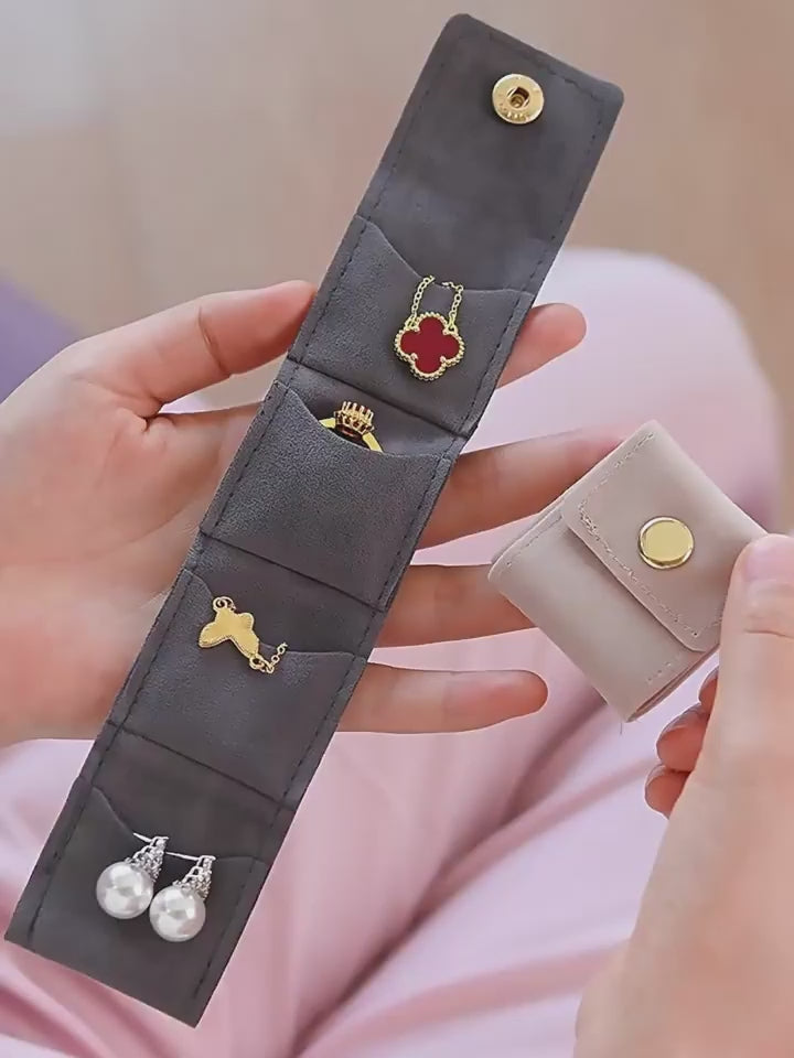 The foldable, multi-layered design allows you to store necklaces, rings, bracelets, and earrings separately. Each piece has its own dedicated pocket, preventing tangles and scratches while keeping them organized. Despite its compact size, the contents are easy to see and access. It's perfect for everyday use, as well as for carrying accessories when traveling or on the go. Its small size makes it easy to fit in a bag or pocket, allowing you to smartly manage your accessories on the go. *Accessories not included.