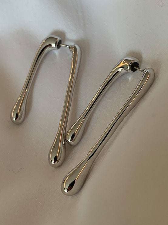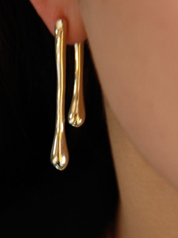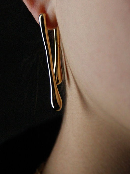 雫が落ちるような立体感のあるスタイリッシュなデザインのピアスです。縦長シルエットで顔周りをシャープに見せてくれます。イヤーカフとの重ね付けもおすすめのアイテムです。