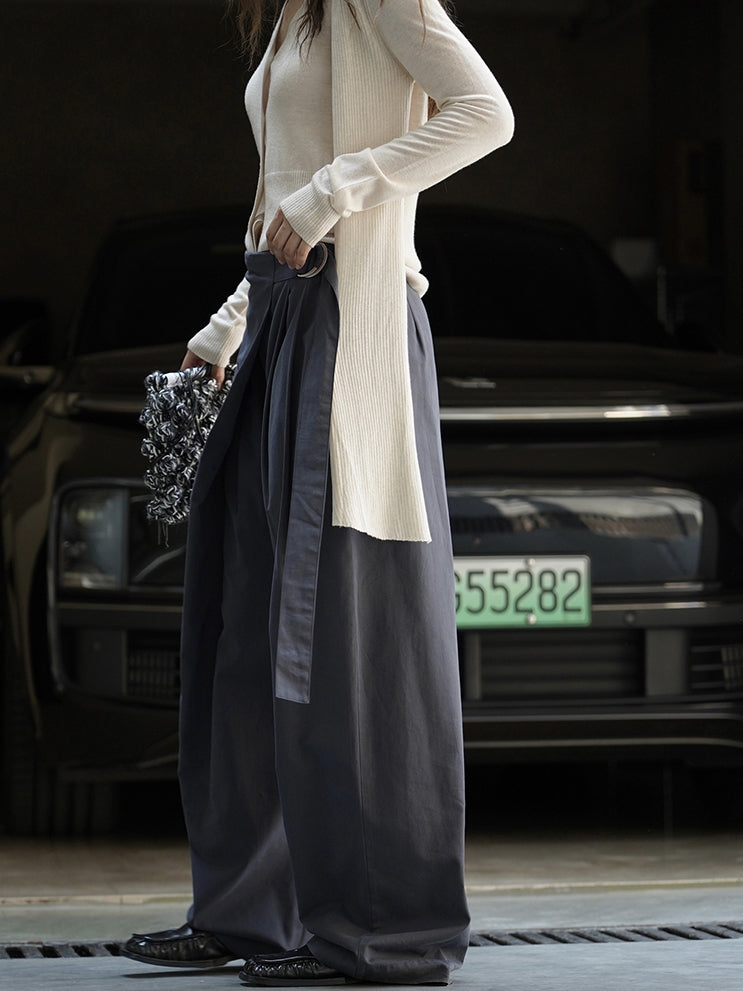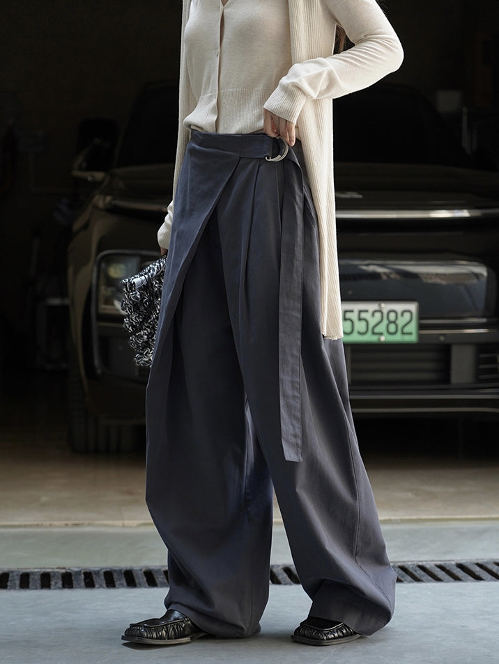 Diagonal-Belt Wide-Leg Pants_BDHL7769